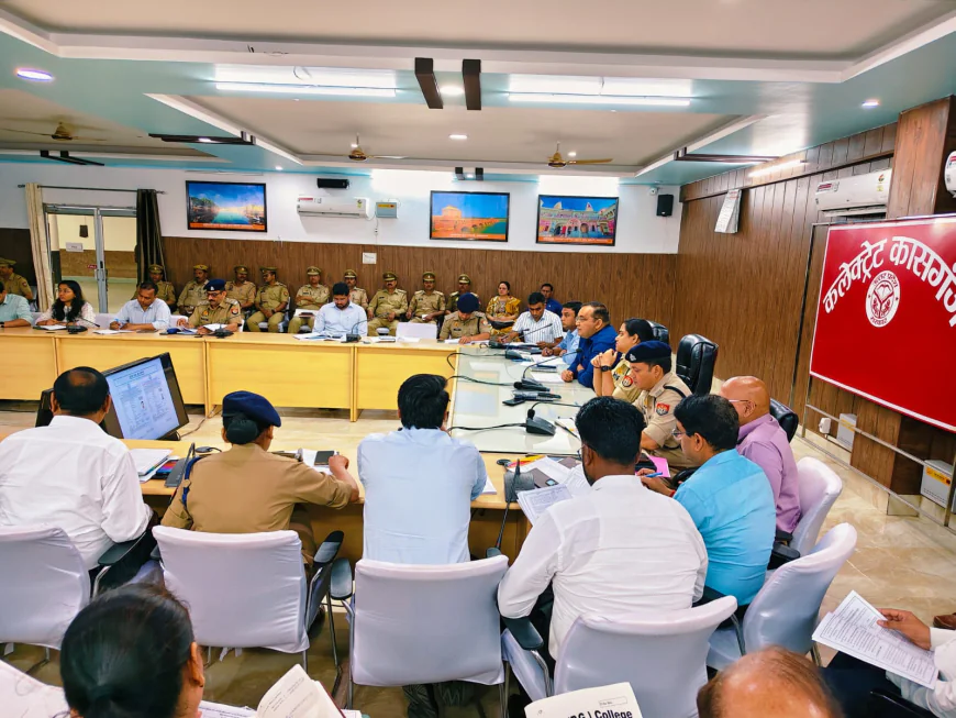 Kasganj news डी एम व एस पी द्वारा उ0प्र0 उप-निरीक्षक पुलिस एवं समकक्ष पदों पर सीधी भर्ती-2025 की लिखित परीक्षा सम्पन्न कराये जाने से सम्बंधित बैठक हुई आयोजित।